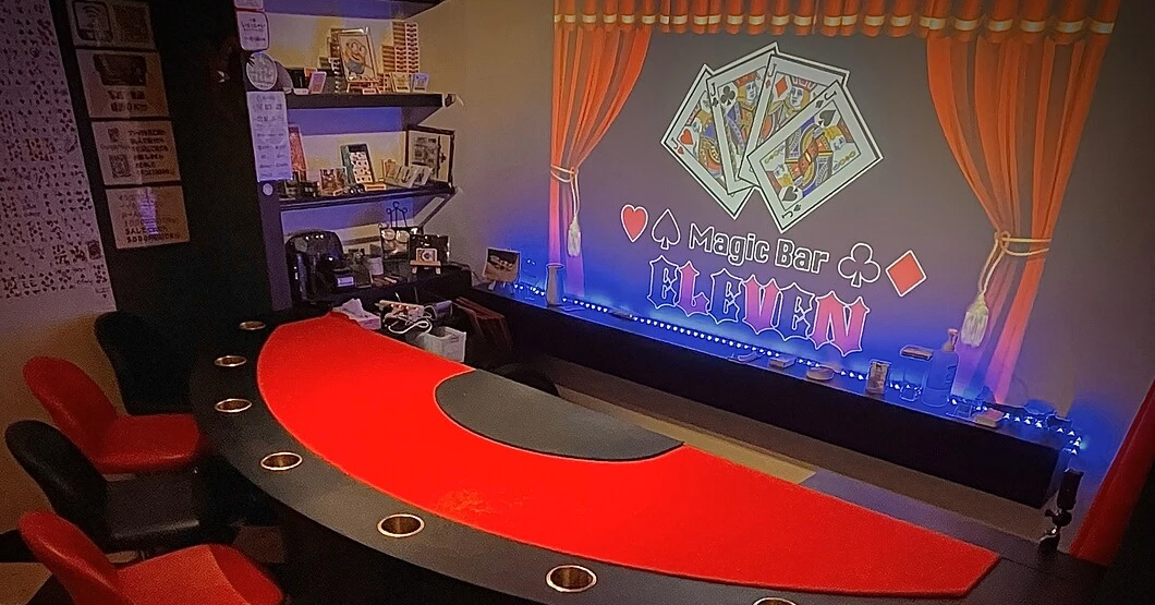 難波駅から徒歩すぐ、エンターテイメント性抜群の「Magic Bar Eleven」。プロのマジシャンによるテーブルマジックやステージショーを間近で楽しめる特別なバーです。お酒を飲みながら、目の前で繰り広げられる不思議な世界に引き込まれること間違いなし。