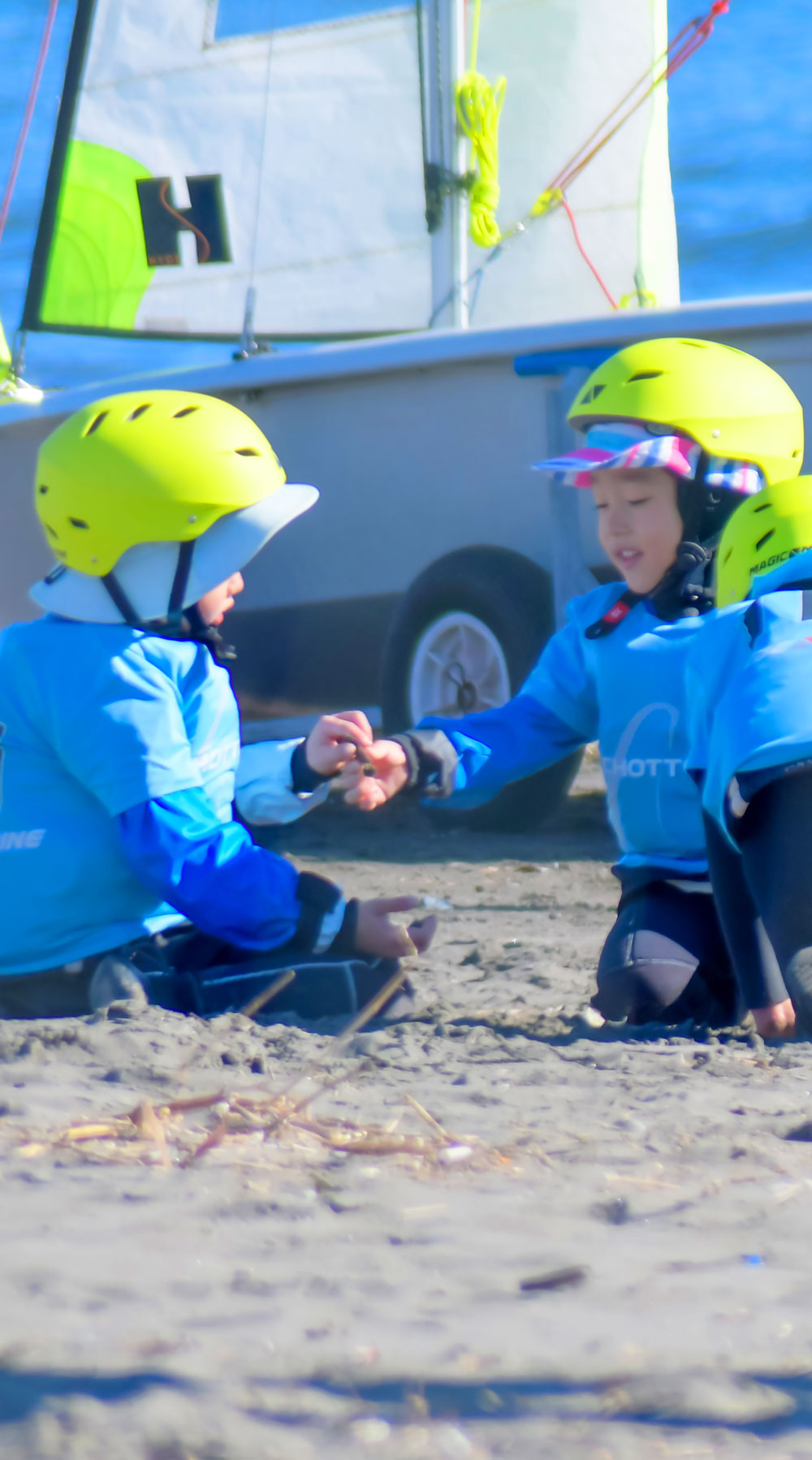 『ちょっとヨットKids(キッズ)』は幼稚園児が小学生になるまでの間に海になれ親しみ、小学生から『ちょっとヨットJr.』で活動することができるように準備するマリンスポーツジュニア教室のプレスクール。 です。 ヨットやSUPに乗ったり、砂浜で生き物を探したり、海のコンディションが悪い日には教室で海についてお勉強をしたり、海に慣れ親しむことができるクラブです。