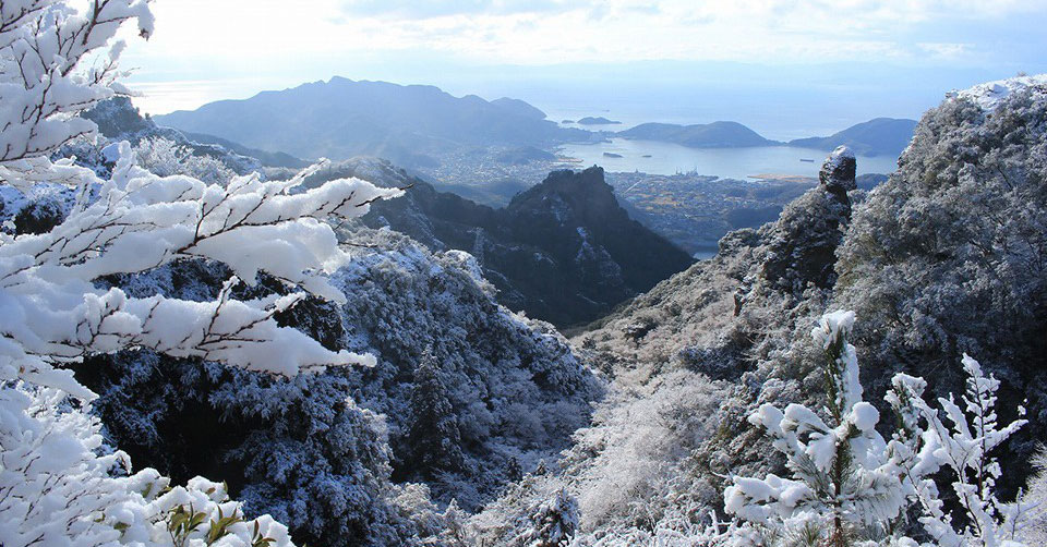渓谷を縫うように進むロープウェイからは、多島美と呼ばれる瀬戸内海の島々まで一望できます。特に冬は空気が澄み、遠くの本州まで見えるほどの視界の良さが魅力。穏やかな陽光が岩肌と海に作る陰影が、瀬戸内屈指の絶景をさらに際立たせます。
