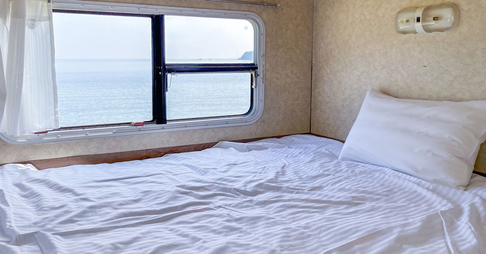 瀬戸の秘境に佇むこのコテージは、全室オーシャンビュー。窓一面に広がるのは、凛とした冬の空気が磨き上げた瀬戸内海の絶景です。和室と洋室が合わさった落ち着いた空間から、誰にも邪魔されない静かな海を眺める贅沢な時間を独り占めできます。夏はマリンアクティビティが賑わいますが、冬は潮騒だけが聞こえる穏やかな時間が流れます。