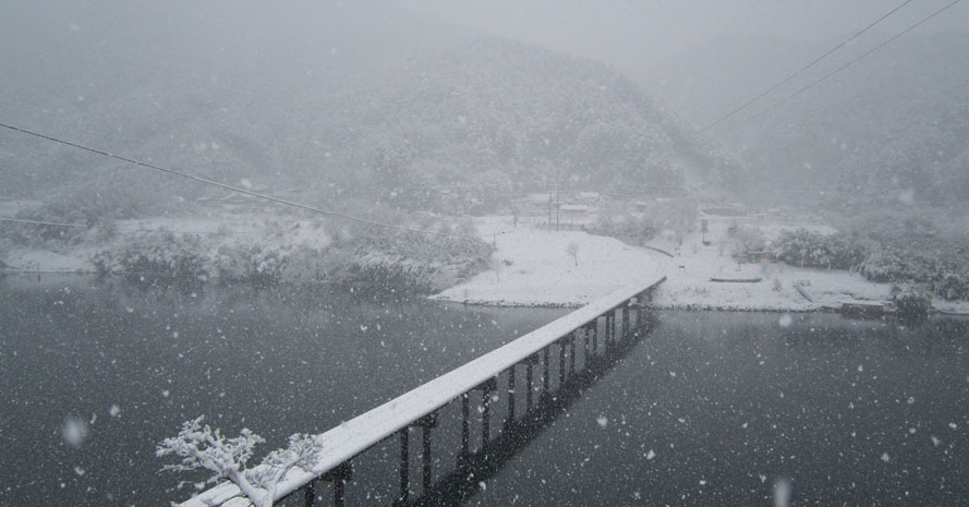 シンプルな植物のつり橋が渓谷にかかり、秘境らしい空気を漂わせる人気スポット。冬は訪れる人が少なく、じっくりと秘境の景観を独り占めして楽しむことができる絶好の季節です。